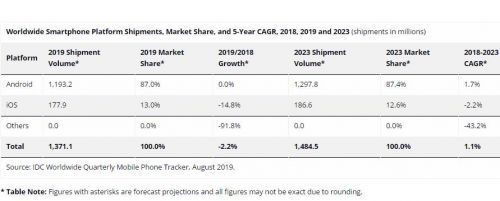 近两年,全球智能手机出货量持续下滑已经是常态。据第三方调研机构IDC预测,2019年全球智能手机出货量将下滑2.2%,再次印证了全球智能手机市场已经饱和的事实。