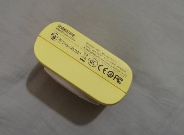 底部主要印制了喵喵机P2s的一些3C认证及环保标示,因其内置锂电池,不支持回收,所以小伙伴所在的城市如果开启了垃圾分类的,一定要注意哦。