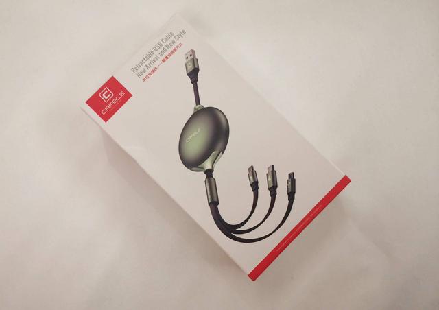 这一次拿到的是卡斐乐雅动系列伸缩数据线,包装盒上印制产品图示,从图示可看到卡斐乐这款数据线共提供了Mrico-USB、Type-C、Lightning三种接口,为市面上当下主流的手机充电接口,满足了差旅需求。