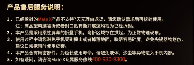 大家购买华为Mate X之后,还是要认真阅读官方的产品售后服务说明,一方面是便于日后更好的接受售后服务,另一方面是提高你保护华为Mate X的意识,纠正一些错误的用机习惯。