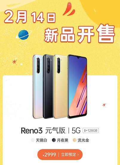 配备了高颜值、高性能配置的Reno3元气版即将在2月14日正式开售。售价仅为2999元,它也成为了唯一一部售价在3000元以内的5G视频手机。目前进行预订,还可以享受到立减100元的优惠,另外还可以获赠129元O-Fresh耳机、情人节礼品等好礼。