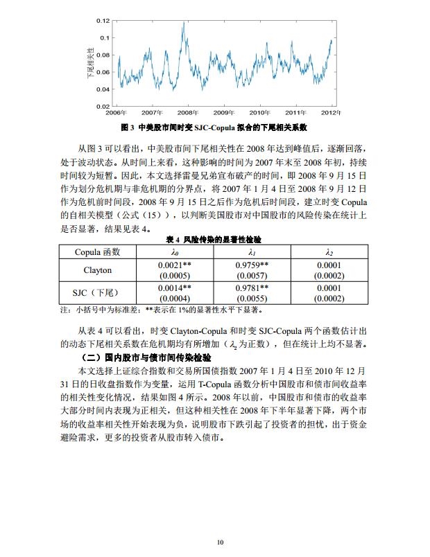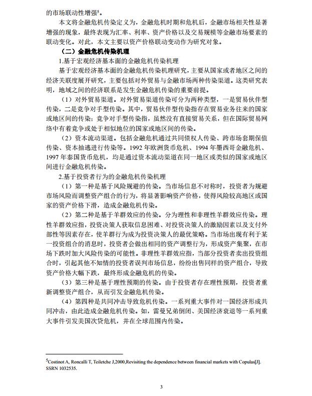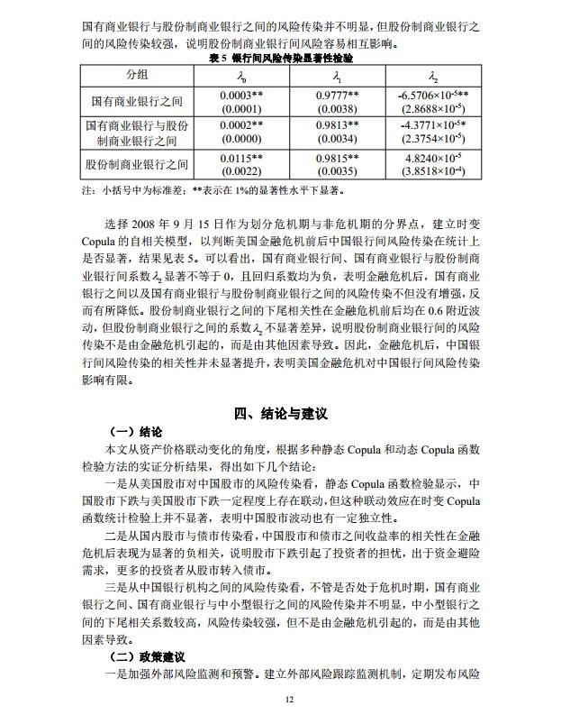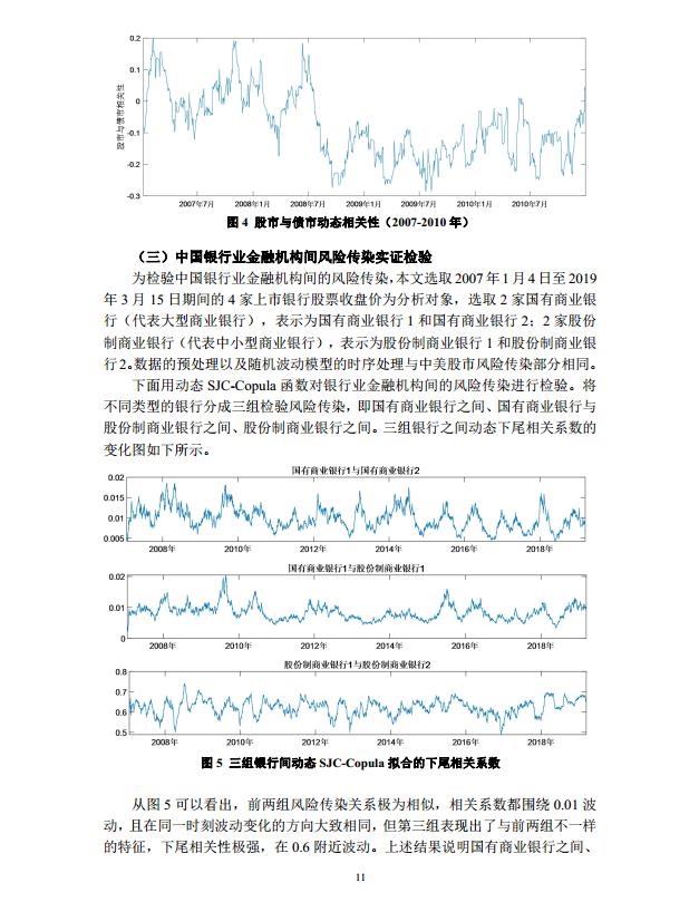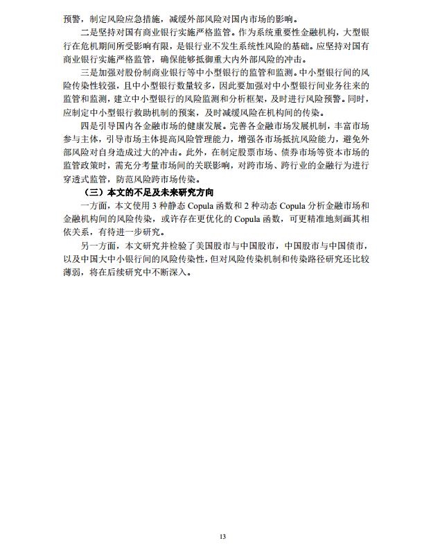 摘要 【央行发布《金融危机传染实证分析研究》】论文指出,一是金融危机时期,中国股市下跌与美国股市下跌一定程度上存在联动,但中国股市的波动也有一定独立性;二是全球金融危机后,国内股市和债市呈现显著负相关性;三是从国内金融机构看,不论是否处于危机期间,国有商业银行之间、国有商业银行与中小型银行之间的风险传染并不明显,中小型银行之间风险传染较强,但不是由金融危机引起的,而是由其他因素导致。(一财)