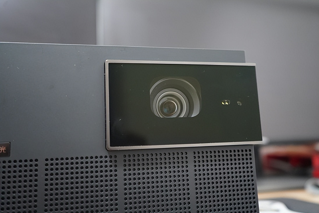 腾讯极光投影P2的整体外观设计,给人的第一印象就是丑萌,镜头模组部分有小米11 Ultra后摄模组的既视感,难道鹅厂这是借鉴了?这只是开个玩笑罢了!极光P2采用金属材质外壳,让质感更加高端,哑光喷涂工艺加身,尽显轻奢气质。为了让投影仪在工作时更加的稳定,投影仪下半部分四面全部设计了成百上千的散热孔,让散热效果俱佳。