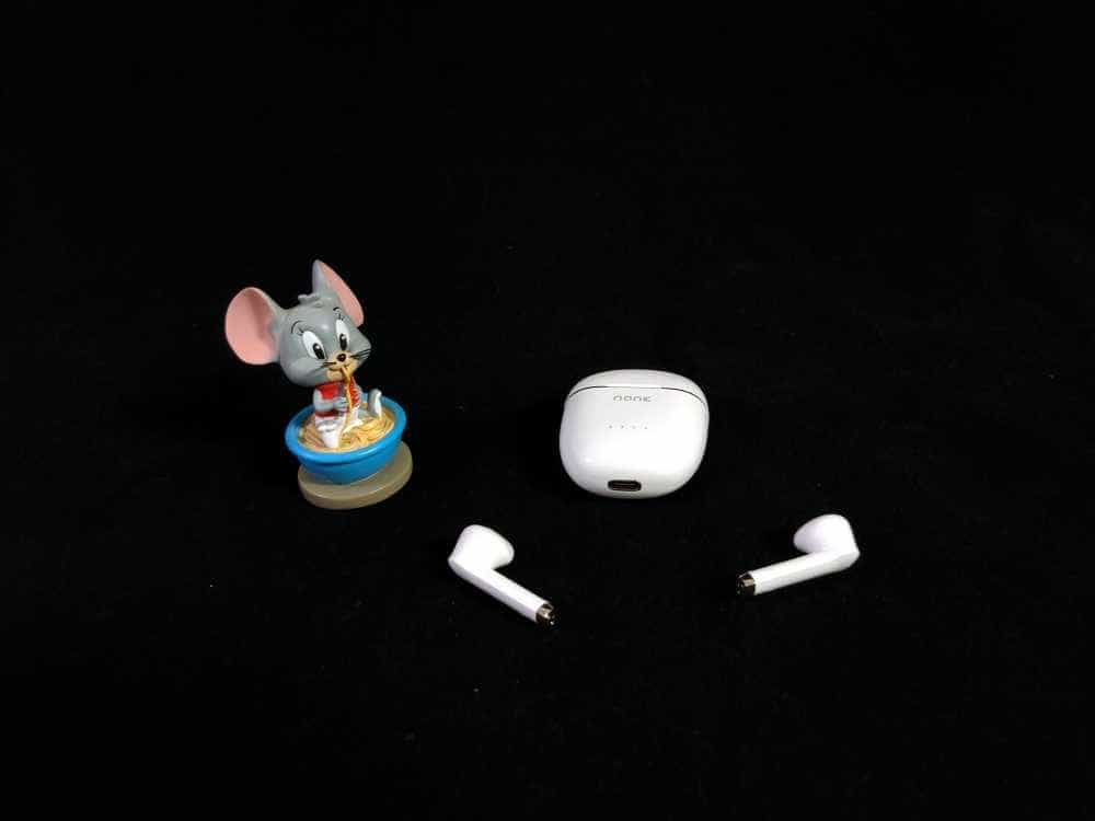 耳机白色的配色加上银色镶边设计,整体线条优雅好看。每个耳机也只有3.8g,半入耳的设计戴在耳朵上很轻巧,有的时候走着走着就下意识地摸摸它掉没掉,因为是真的很轻哈哈。