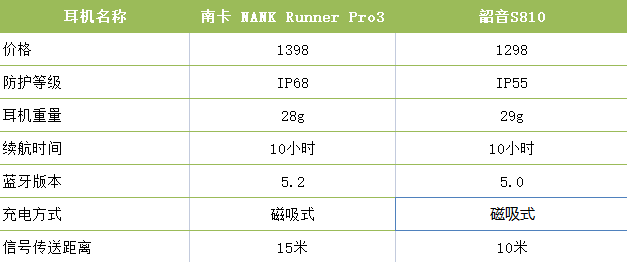 续航方面,南卡runner Pro 3 和韶音s810都是十小时。除此之外,南卡runner Pro 3还加入了NFC连接技术。