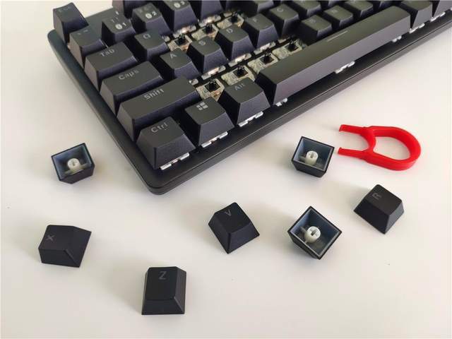 键帽采用ABS材质,采用镭雕技术工艺打造,黑色外观,圆弧内凹,磨砂工艺透光均匀。