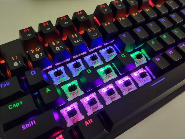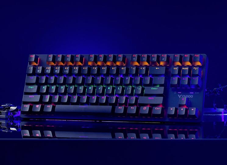雷柏V500PRO-87多模版为用户提供了黑、青、茶、红四种轴体,单个轴体的寿命可以达到6000万次,用户根据自己的使用需求,挑选不同轴体键盘。小编入手的键盘为黑轴轴体,相比其它几个轴体来说,黑轴按压力度最大,触发回弹速度快。无段落感,按键声音小,对于办公室文字工作者来说,安静不会影响到办公室其他人,对于专业游戏来说,是非常不错的。