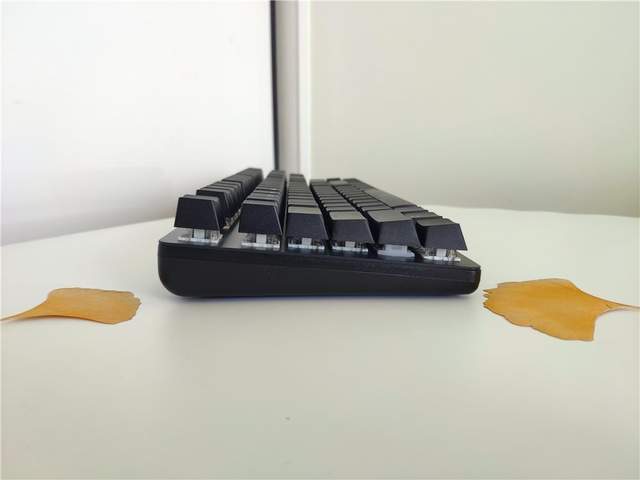 从侧面看,键盘与桌面形成约6度的夹角,符合人体工程学,无论打字还是玩游戏都不会累。