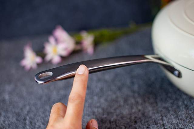 它的把手采用的是经过精细打磨的不锈钢材质,粗细适中,握持感不错。