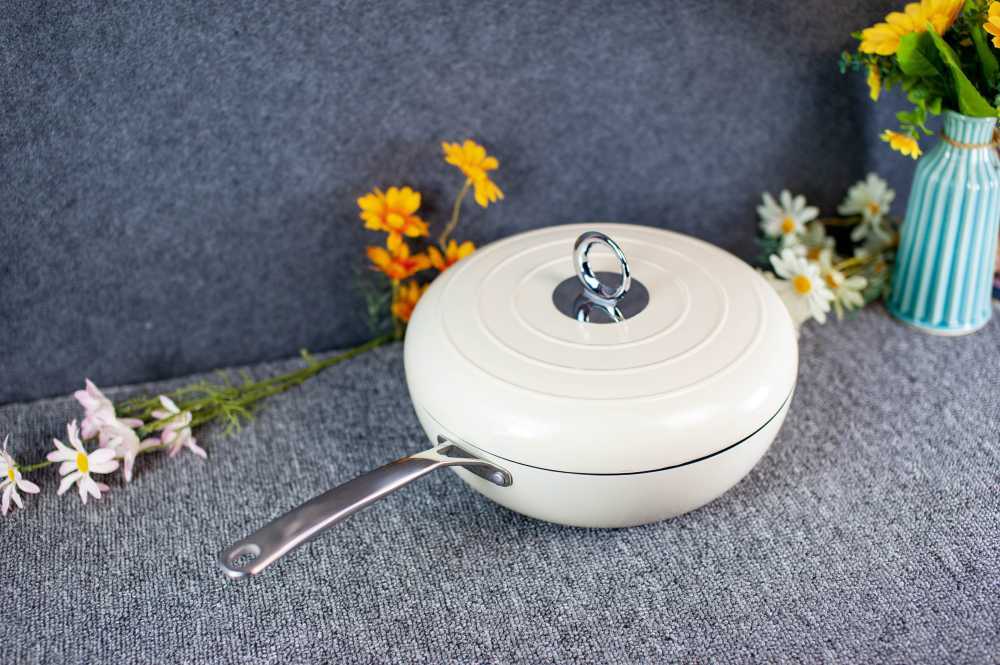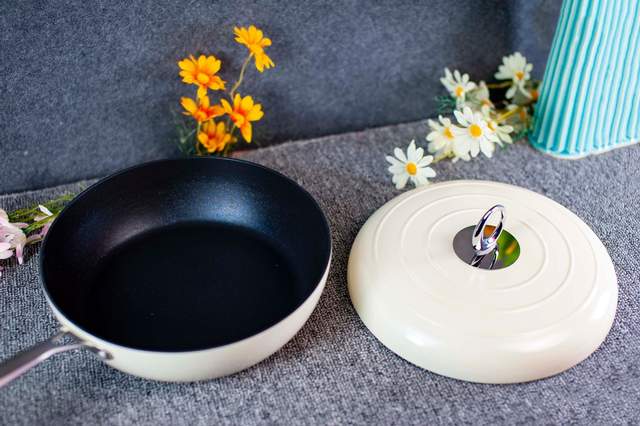 中科德马克白月光琳琅不粘锅的锅体很深,足有9cm,底部很平,既能作为炒锅像顶级大厨一样颠勺翻炒,也能当做电饼铛来烙饼和煎炸。