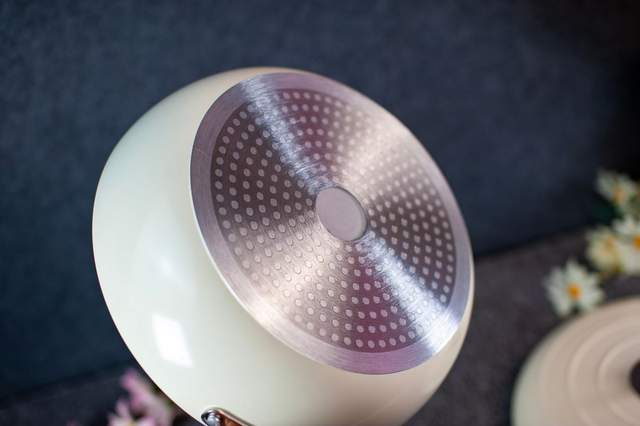 底部是电磁炉通用的金属导热材质,作为了凸点,能够让热量更均匀地传递到锅内,不论是电磁炉、电陶炉、煤气炉、天然气炉都能应对自如。