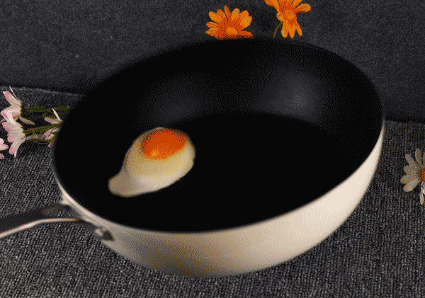 无油煎鸡蛋也是必备操作,起锅不用加食用油,等锅热了之后,直接打入一个鸡蛋,大概1分钟左右,晃动锅具,可以看到鸡蛋可以随着移动而在锅内滑动,非常丝滑,把鸡蛋拿出一点看不出使用过的痕迹,减少了热油的烹调,还原鸡蛋原本的味道,美味又健康。