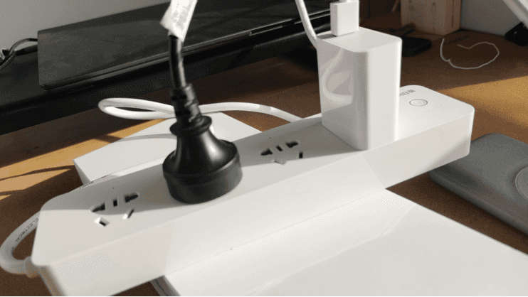 长按按钮就可以重新复位连接新的设备,这是这款智能插线板的特色功能。另外还有一点我非常喜欢,那就是这个插孔的间距,足足有有40mm,当你插上用电器的时候,你就会明白为什么我喜欢这个间距。因为市面上有些充电板间距离的太近,用了一个插孔旁边的两个插孔就都用不了了。所以虽然只有4个插孔,但是比市面上的6孔甚至8孔都更加有效,能够合理利用每一个插孔。