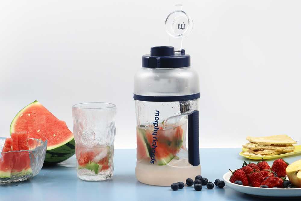 其次摩飞小胖吨榨汁桶还有最基础的吨吨桶功能,装入饮用水再辅以水果片或者茶包提升口味,尤其在夏日再加上点冰块,消暑美味的冷泡茶就做好啦~简直就是清爽可口。