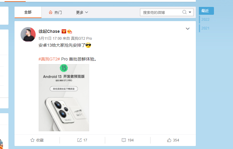 第一时间官博也附上社区Android13 beta1预览版 刷机包教程