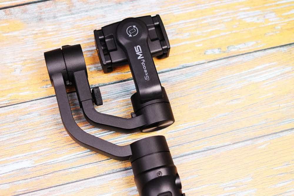 先从外观说起吧,我想“精致”二字是对于该机最好的诠释了。当你手持这台稳定器时你绝对想不到这是五百出头的产品,黑色磨砂机身,规整不算密集的按键排布,大拇指放置摇杆采用太阳纹设计,开关机键红色点缀,握持部分是皮质包裹,拿在手上挺舒服的。该机用的是正交三轴设计,这种设计能够较好承受重量,防抖结构也能更加灵活。