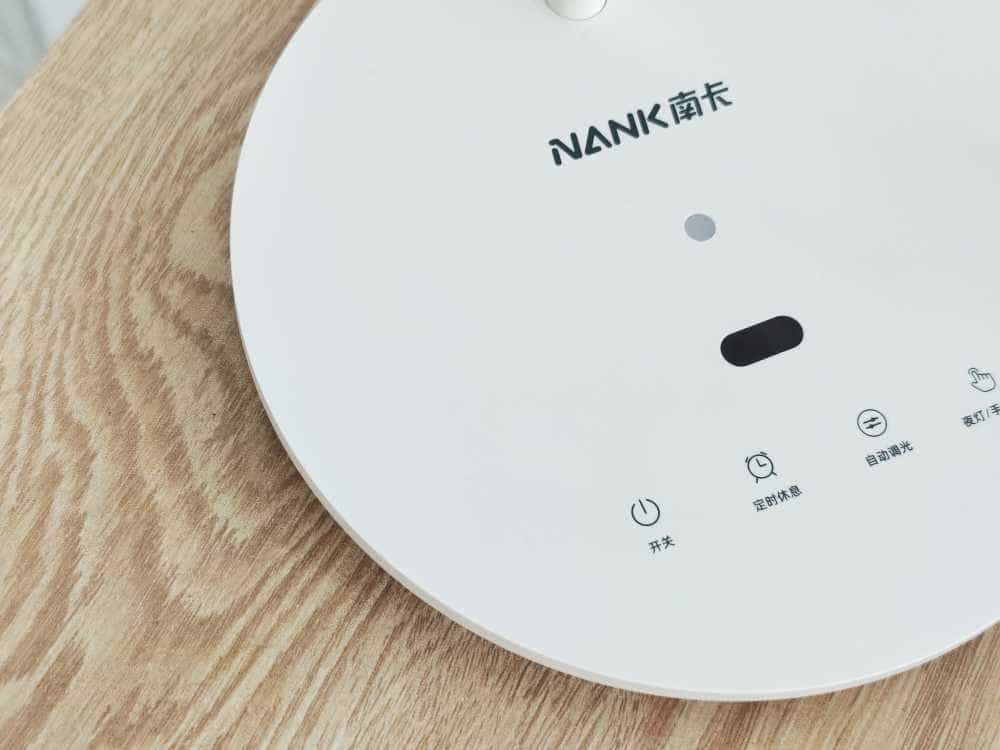 南卡台灯 L1 的主要卖点是智能控制面板,采用可触控式设计,集成开关、定时开关、自动调节和夜间模式 4 枚按键,可以通过点按进行操作。在按键上排还有两个传感器,用来感知手势和环境光亮度。