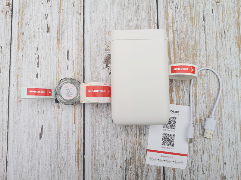 配件主要有一条数据线和一张保修卡,保修卡的背面是是两个APP的下载二维码,打印机支持家庭操作和商业使用,分别由“臣小印”和“精臣云打印”两个APP来执行。