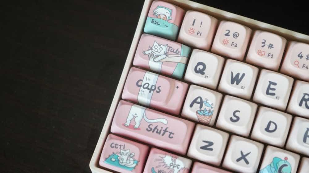 Lofree洛斐小翘机械键盘这款粉色猫咪系列的键帽真的让喜欢粉色的少男心和喜欢猫咪的我本人双厨狂喜,整个键盘到处都是优雅可爱的白色猫咪,粉色背景色,哪个男孩子见了不会惊呼一句真爱啊!