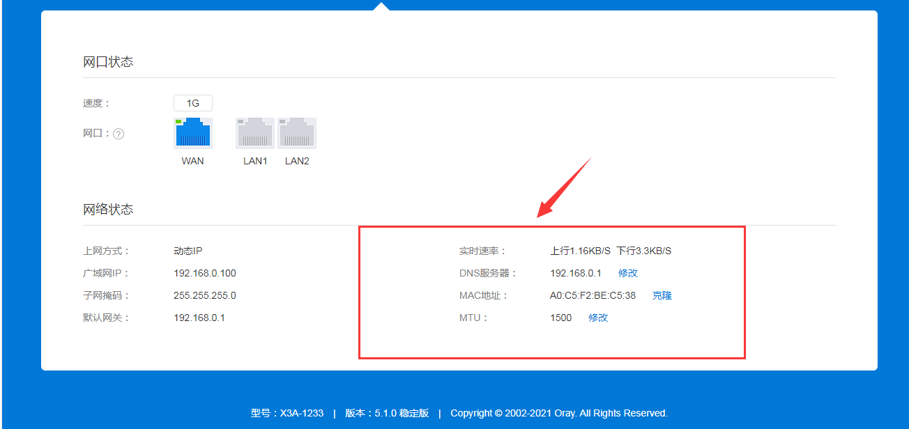 在管理界面的网络信息栏,可以查看路由器网络接口的工作情况,和实时的网络状态。