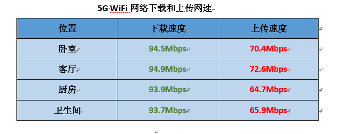 再看看蒲公英X3A穿墙性能,采用Speedtest第三方测速软件,可以看到家里每个房间5G WiFi网络的上传和下载的速度相差无几,信号都比较好。