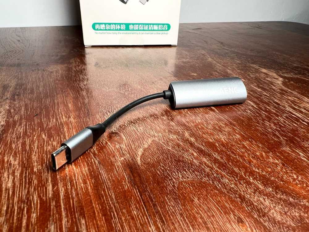 AI麦克风消噪宝的外壳为金属材质,坚硬防刮又有质感;中间连接线TEP材质,两端链接处为全包裹式一体成型,不惧弯折;一侧是3.5mm的耳机插孔,另一侧是Type-C接口,可连接目前主流设备。AENC是这个品牌的LOGO,AENC是小米生态链基金投资的企业,专注于音频技术及产品研发,拥有多项发明专利,其产品多用于华为、中国移动、微软等大公司。