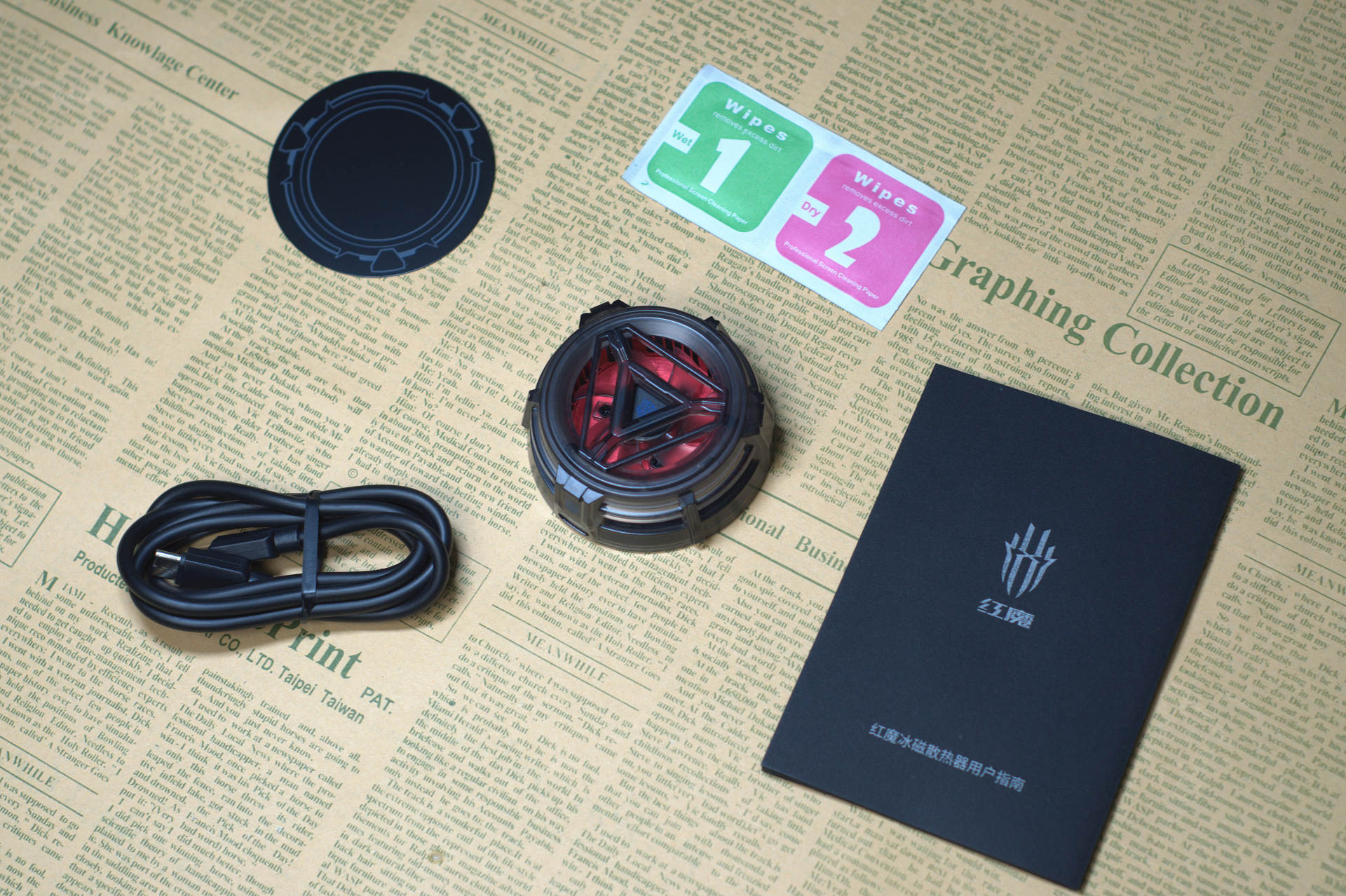 盒子里面包含散热器、说明书、数据线以及带有3M贴纸的磁吸片。
