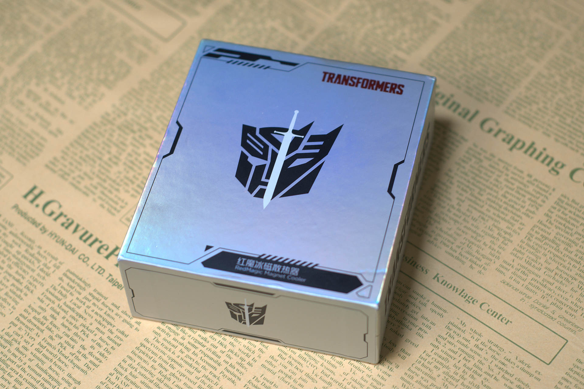 冰磁散热器的包装盒必须给大家分享下,创意性十足。银色的底色,搭配上黑色勾勒出的机甲线条,有种变形金刚动漫开场的既视感,如果你是变形金刚的铁粉看到这个包装盒肯定爱不释手。正面Logo的设计极具匠心,是由擎天柱和威震天两大标志各占一半组成,混合标志的中间还设计了一把宝剑,预示着左右双方是对立的。