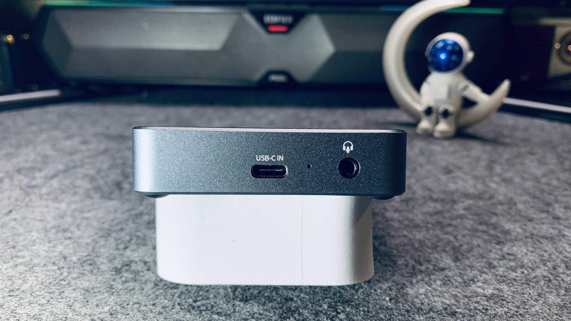 在接口方面,这款扩展坞的接口可以说是非常实用了,按照顺序依次来看一下,上面图中分别是支持10Gbps高传输速率的USB-C 3.1输入接口和3.5mm高清立体声耳麦二合一接口,两个接口中间是工作指示灯。
