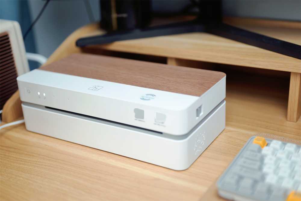 汉印FT800打印机采用了方正的造型设计,四个角做了圆角处理,整体白色的设计配上顶部的木纹装饰,显得很有质感。