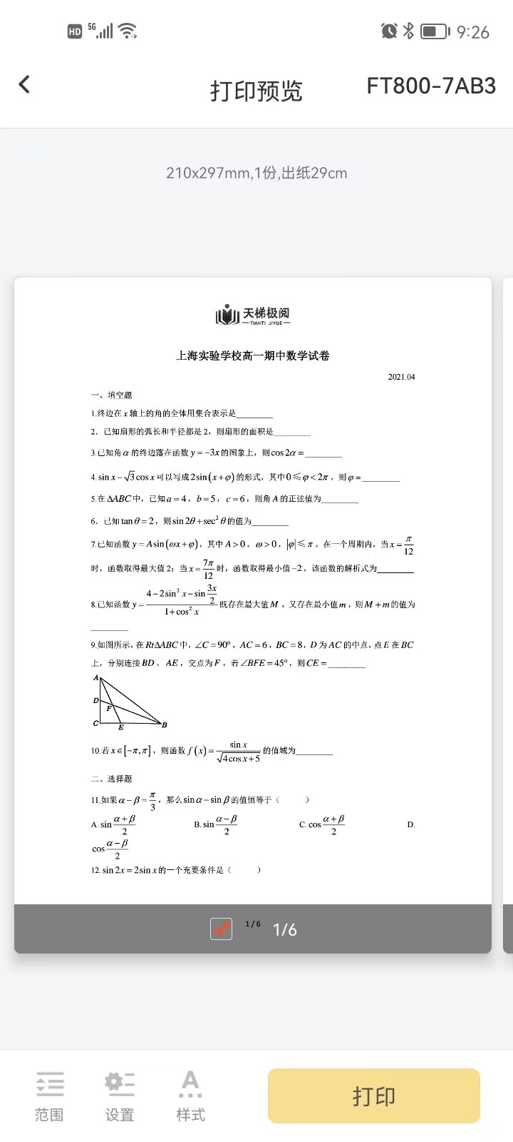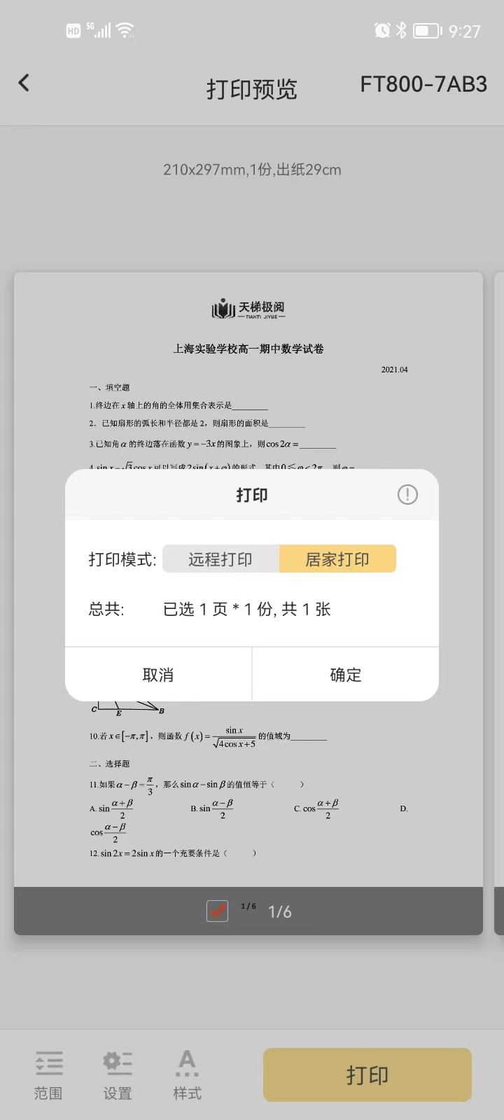 确定好试卷后进行预览,我们根据实际情况来选择打印模式,不在家的时候就可以选择远程打印,给在家的神兽安排一套充满沉甸甸父/母爱的试卷。