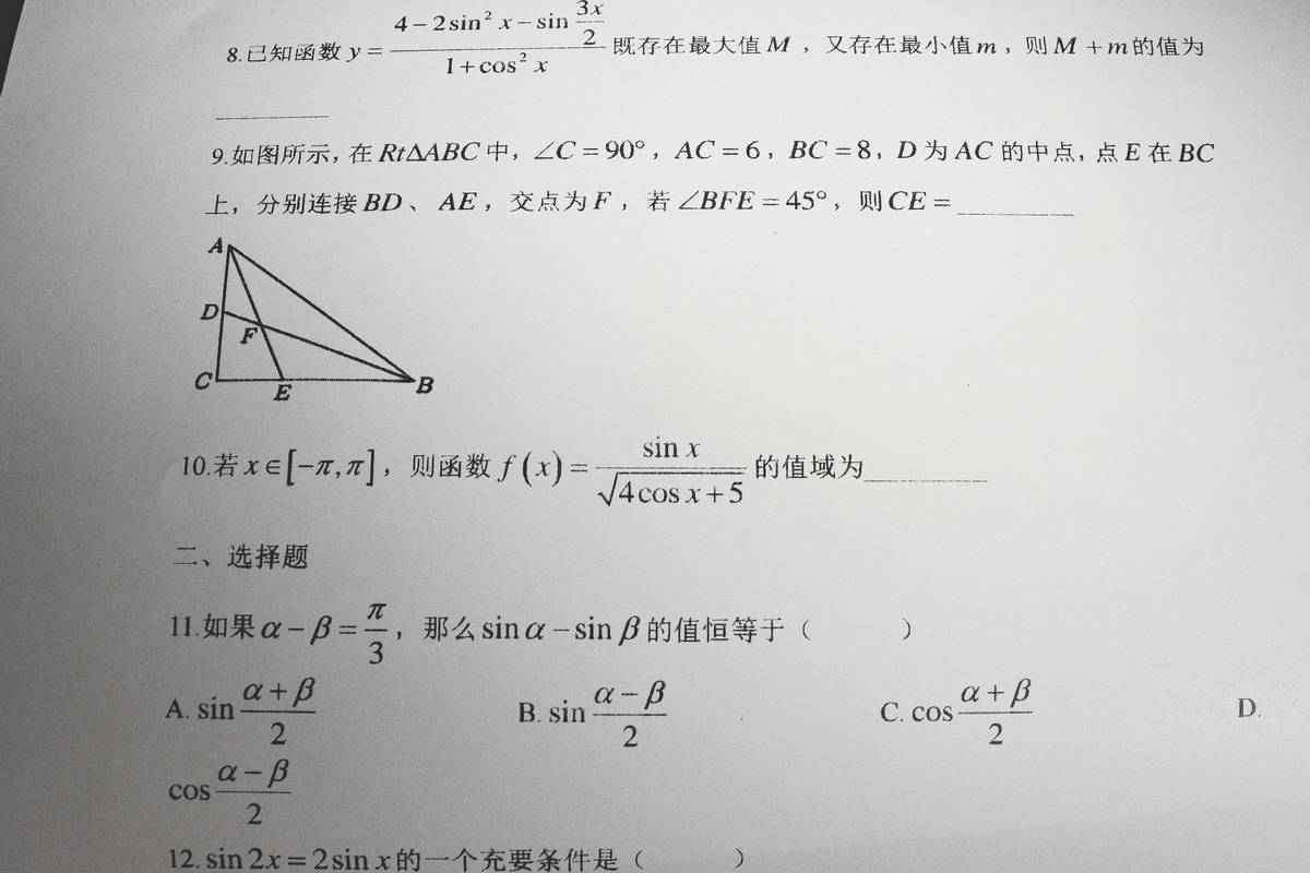附图就是试卷的实拍图片了,大家觉得效果怎么样?