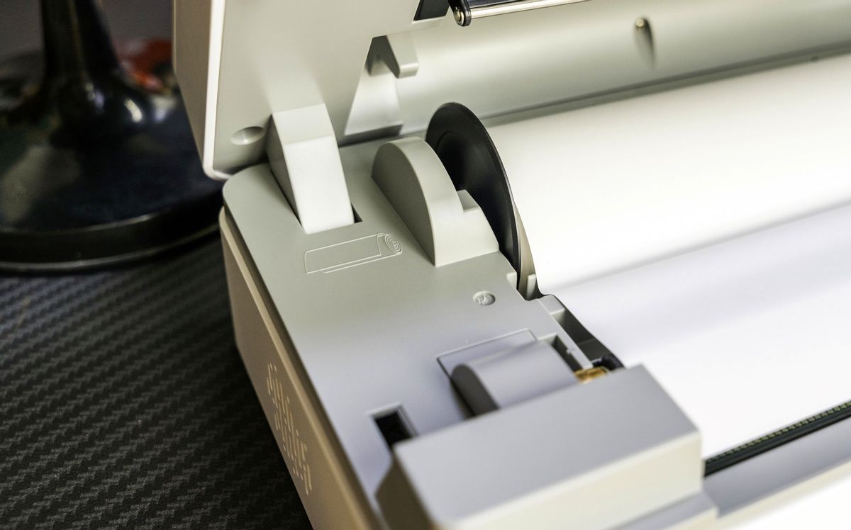 汉印FT800打印机侧面下方是散热孔,上方是换纸开关,注意:换纸开关是对称的,两边都有!我一开始以为只有一个,结果差点用蛮力把打印机搞坏,还好及时发现了问题。