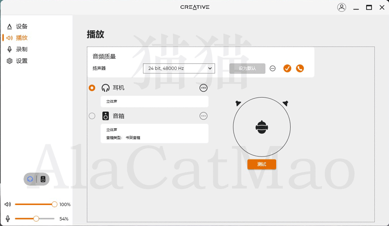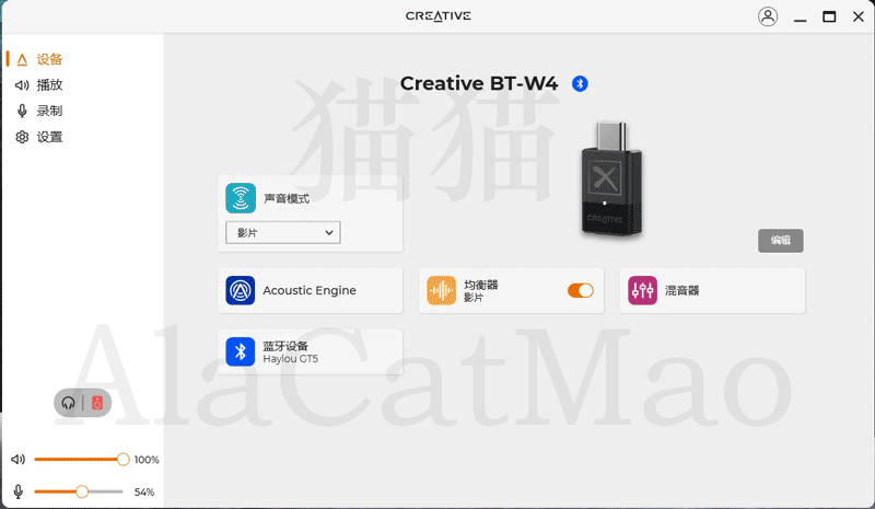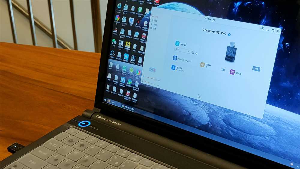 在PC端使用创新BT-W4时,需要先到创新官网下载并安装Creative应用程序,通过Creative应用来实现对蓝牙设备的连接配对、声卡功能的设置调节。而在功能层面上,多媒体外设的调度功能都集中于Creative应用的设备选项中,旗下包含了10个有效工作界面,这里通过动态闪现方式为大家进行统一展示。是不是有些眼花缭乱?其实对于新手用户Creative也有贴心设计,在声音模式下为用户提供了几十项包含音乐、影片以及对应游戏类目的预设环境音,通过它能够快速进入最佳听感。