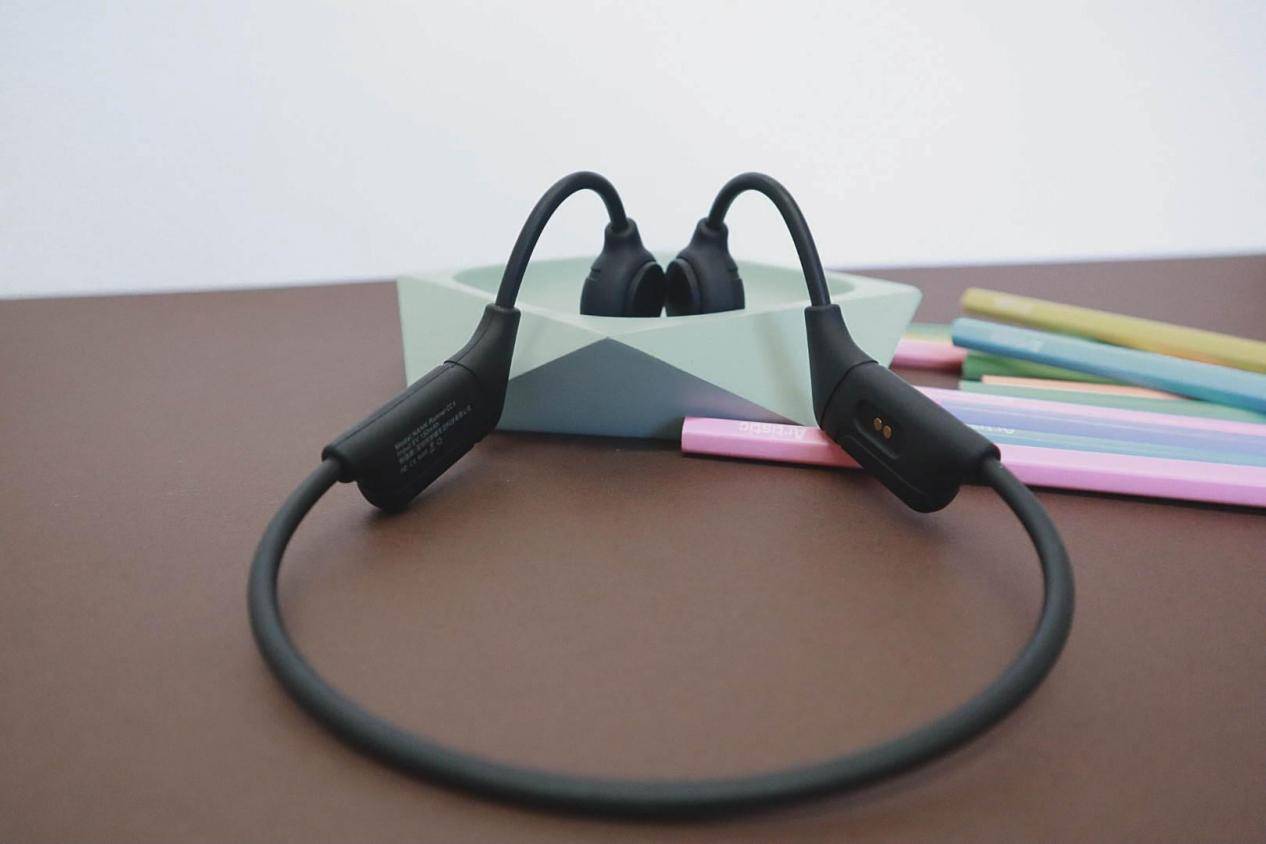 韶音Aeropex AS800一款骨传导运动耳机,运用长条形结构设计的骨传导单元来替代耳塞,这两个单元尺寸比例会比耳塞更大一些,但无需塞进耳朵里,佩戴的时候它们的位置是处于耳朵前方颞骨位置,所以论舒适度会比传统耳塞型耳机略胜一筹。骨传导技术还加入30°倾斜技术,降低减少震动带来的困扰,整体提高了舒适度。韶音Aeropex AS800是IP67防水防汗而且性能不俗,不惧汗水和雨水的侵袭,就算是整机浸泡在水里洗涤也没有问题,不过有需要注意的是不能强力水去冲刷麦克风,以免防水膜破裂损坏。