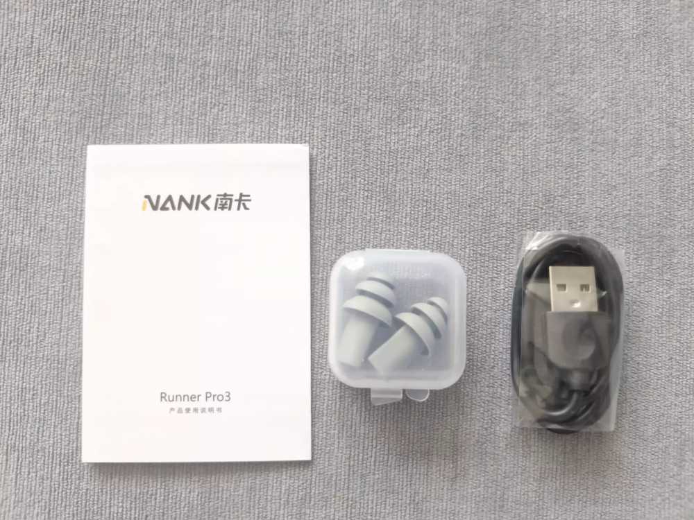 然后在耳机主体下层,则是南卡Runner Pro3的说明书和配件盒,其中配件包括一根磁吸式数据线和一对耳塞。