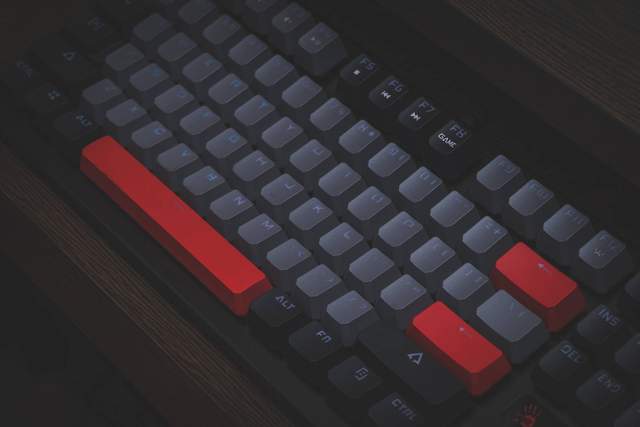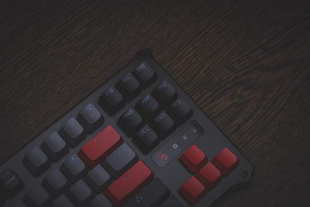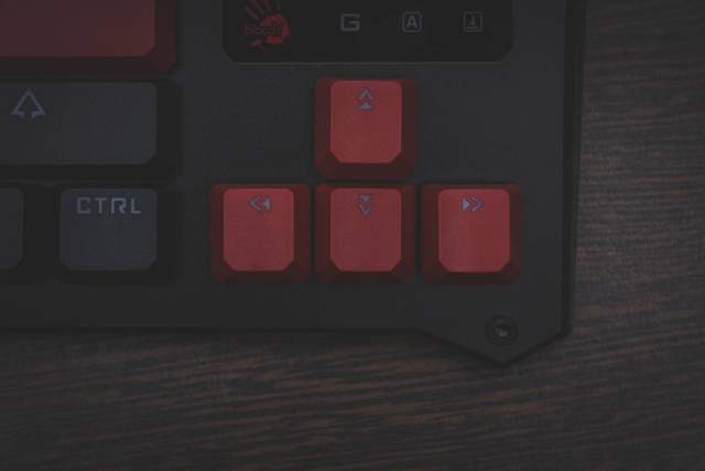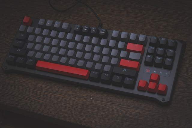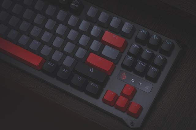 首先从外观上来讲,红黑配色加上犀利的造型让血手幽灵B930看上去就很有电竞feel,与非黑即白的办公键盘完全区别开来。