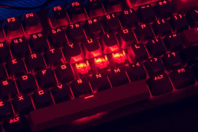 再来聊聊键盘尺寸,我们看到网上说到所谓的百分之几十键盘实际上就是指键盘的尺寸,就像血手幽灵B930是一款87键的小尺寸键盘,取消了14个数字小键盘区域按键,属于百分之80配列。其实玩游戏的话,不光机械轴体重要,桌面空间大小也有很大关系,像很多CS:GO、绝地求生的职业选手会选择超大号的鼠标垫进行游戏,所以为了能够更多的操作空间,他们一般都会选择87键的键盘,因此血手幽灵B930选择87键布局也就能理解了。