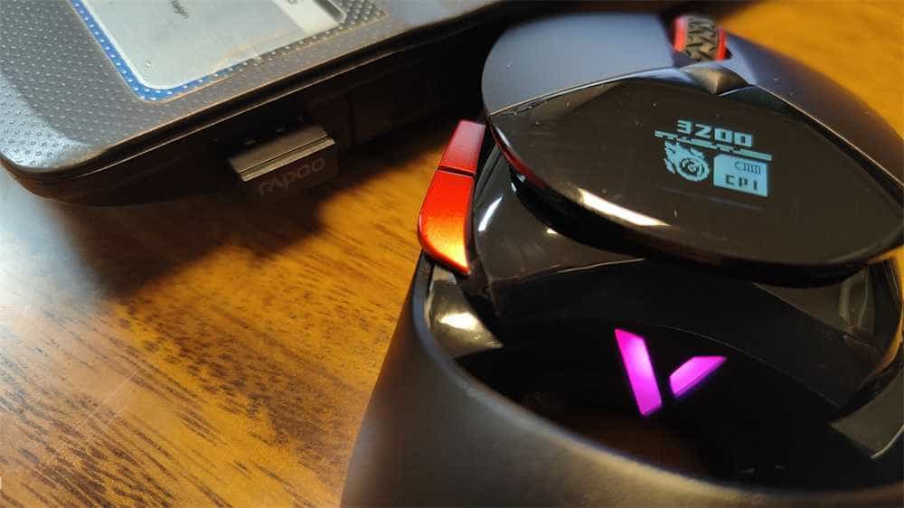 作为一款为游戏设计的无线游戏鼠标,VT960S可不会像别家电竞鼠标那般盲猜DPI,而是通过一块蓝色的OLED显示屏进行内容显示,7个预设档位,用户每按压一次都会在显示屏上显示出当前对应的DPI数值。