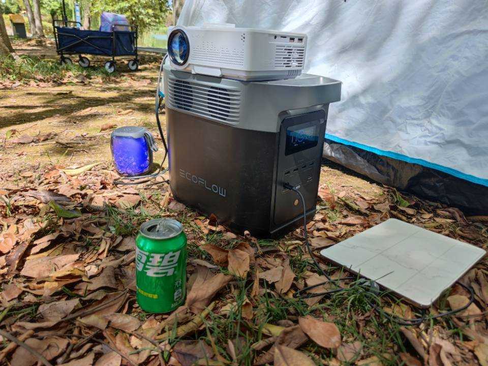 除了高效的直流充电,最好玩的还是交流输出,DELTA 2户外电源给露营带来了更大的乐趣。你可以一边给手机平板充电,还可以接投影仪看电影。没想到电源平滑的顶部还可以完美充当投影仪的底座。