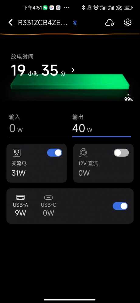 手机APP也可以控制电源的交流以及直流输出开关,点击一下即可打开或关闭。