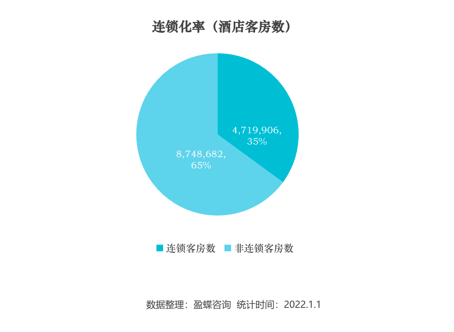 根据《2022中国酒店业发展报告》数据显示,截至2022年1月1日,中国酒店业连锁化率为35%,酒店非连锁化率占65%,而发达国家品牌连锁化率可达60%以上,中国酒店品牌化连锁化依然有较大发展空间。