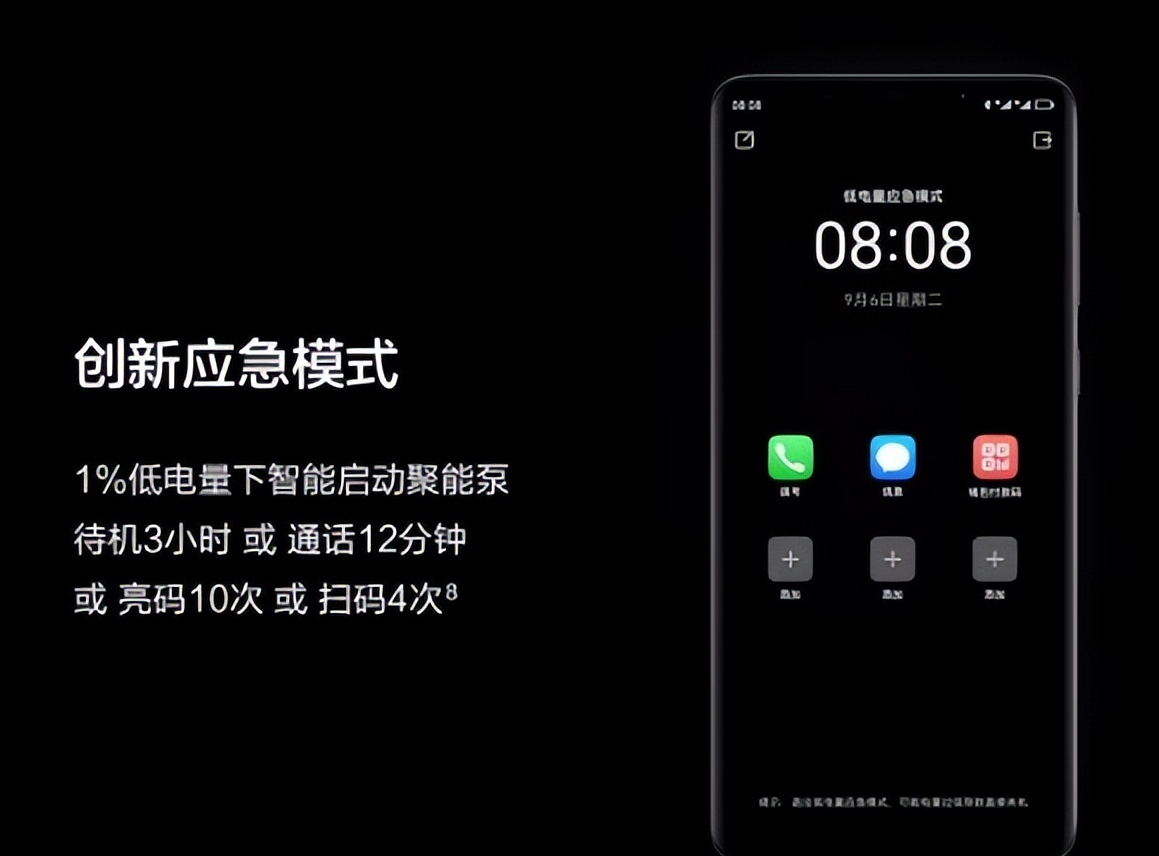 华为mate50系列的应急模式个人感觉日常使用比较多,习惯了移动支付,平常出门很少有人携带钱包。应急模式可以在1% 的电量下智能启动聚能泵,可以提供3个小时待机或者12分钟电话,10亮码或者4次扫码。可以有效地避免平常出门坐地铁再扫码进站手机没电无法出站,光商场手机没有电等情况。