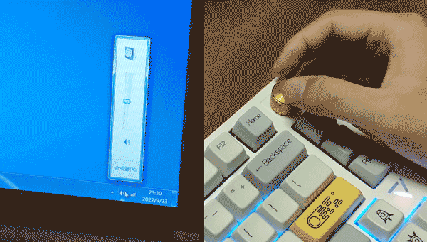 相比强大的驱动自定义功能,键盘上最吸引我的其实还属右上角这枚独特的音量金属旋钮,通过左右旋转可快速实现电脑端或其他设备端对于音量大小的控制,一键按压即可实现快速静音的开/关,这可比通过Fn组合键调节要方便不少。