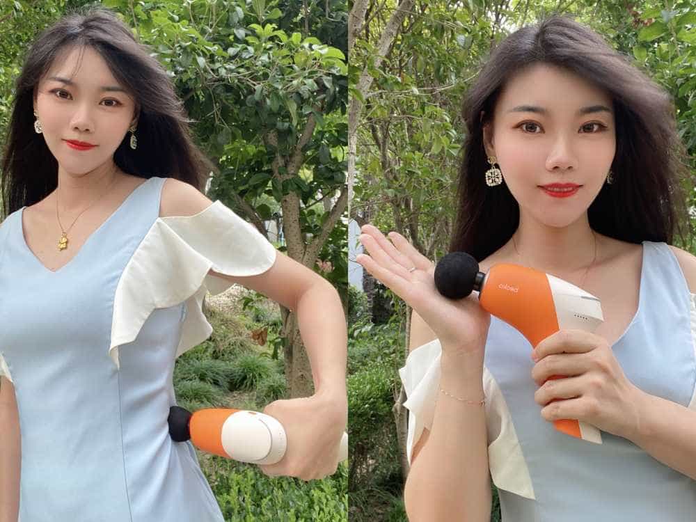 有时候家务繁重或者搬完重物又或者刚打完刚强度的羽毛球,都会使胳膊产生酸痛感,这时候,就带上球形头,打开筋膜枪的开关,对准胳膊上的肌肉,就可以实现精准击打,没有漂浮感,在几十秒强烈按摩的作用之后,肌肉中的酸痛感就消失了。