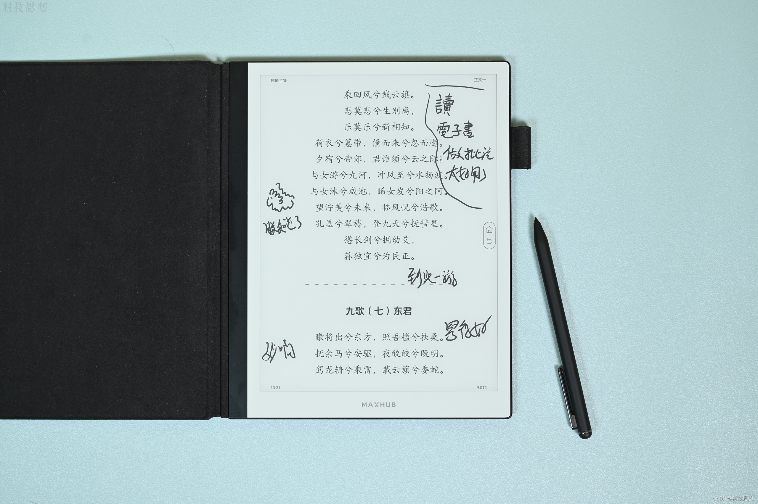 在配置上,MAXHUB领效M6 Pro拥有一块10.3英寸的E-lnk墨水屏,可以直接在上面用电磁笔书写,而且这块屏幕的分辨率达到了1972×1404,显示效果非常细腻,能够清楚显示手写内容,查看图片也很方便,实际显示效果和体验很接近真实的纸张。