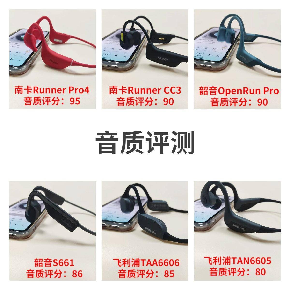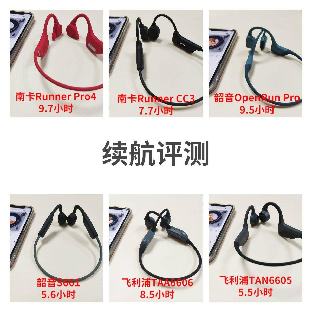 以南卡Runner Pro4、南卡Runner CC3、韶音OpenRun Pro、韶音S661、飞利浦TAA6606、飞利浦TAN6605为样本,为大家作一次参数对比,方便大家更全面地了解到骨传导耳机。
