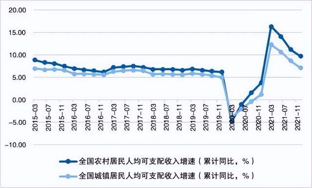国家统计局数据显示,2021年,我国城乡居民收入差距不断缩小,农村居民人均可支配收入达到18931元,同比增长10.5个百分点,增速快于城镇居民人均可支配收入增速的8.2%。同时,农村居民人均消费支出达到15916元,同比增长16.1个百分点,增速也快于城镇居民人均消费支出增速的12.2%。