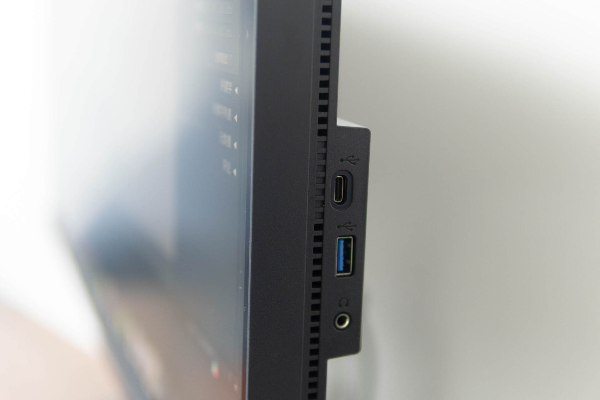 右侧的增加了接口也让平时办公更加便捷,比如我的MacBook Air平时要插个U盘还得拿拓展坞,现在直接连接到显示器的右侧就可以搞定,再比如我的台式机要插个耳机必须要耳机线从机箱一直扯到我的耳朵,现在直接连接到显示器的右侧也可以搞定。