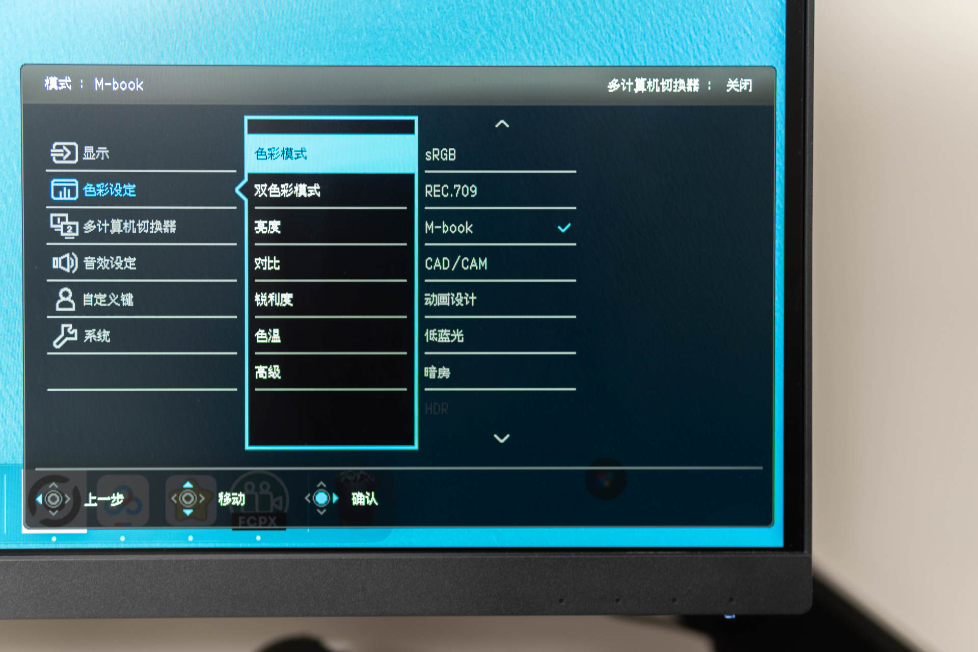 在办公效率上,明基PD2705U解决了大多数显示器都有的通病,那就是控制起来极其费劲,如果你想调节一下屏幕的亮度,你需要先摸到显示器底部的几个按钮,然后点进菜单设置,找到亮度设置,确定进入,再调节亮度,而这些操作都需要你摸索着底部那几个小按钮来进行,盲按误触概率大且操作逻辑比较繁琐。